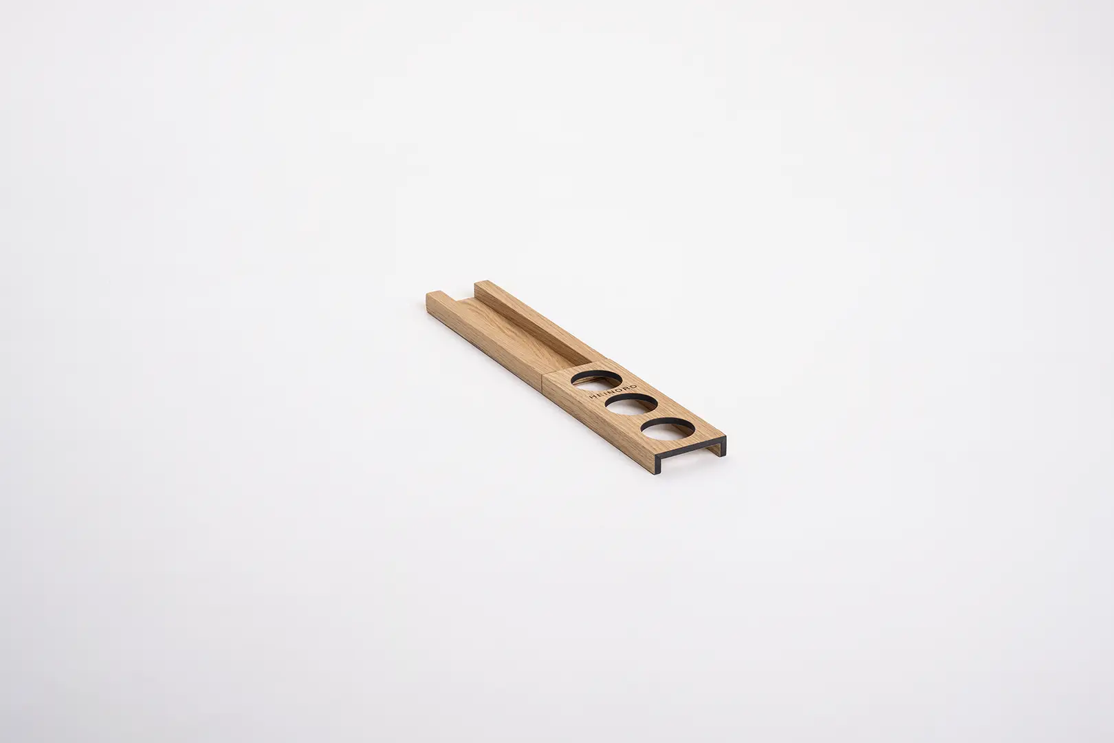 Elegancki organizer z litego dębu do przechowywania niskich i wysokich słoiczków na przyprawy.