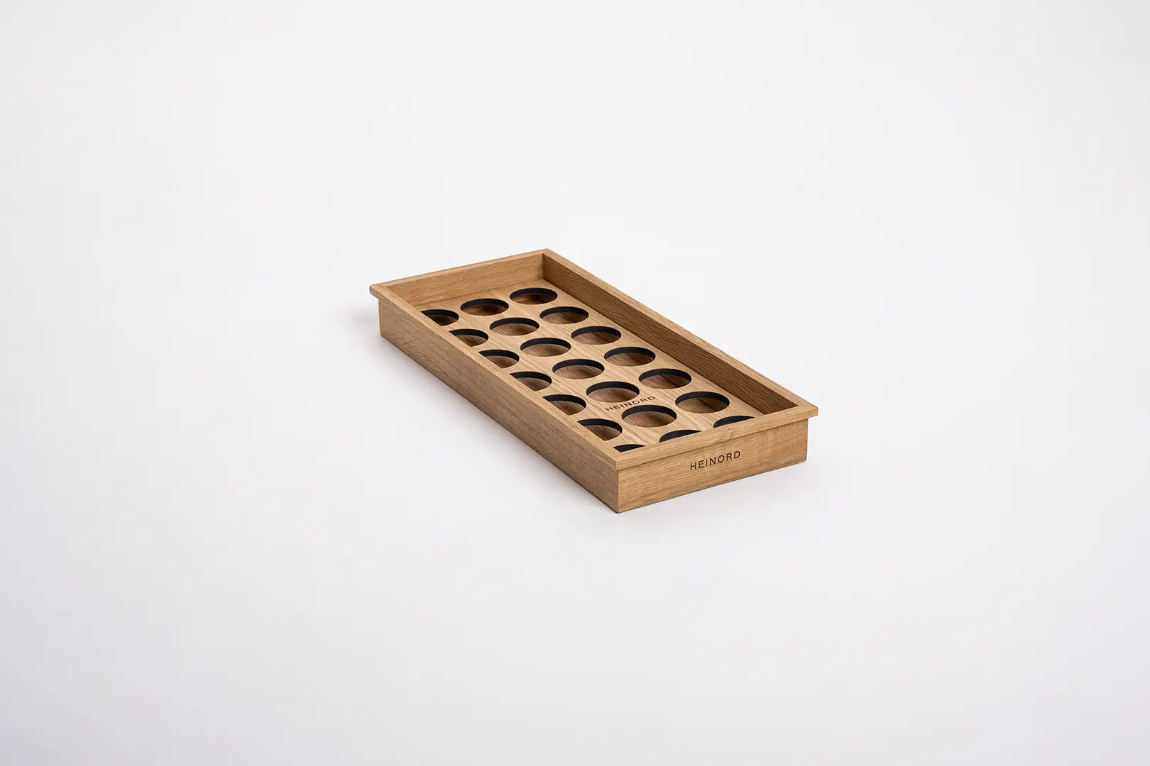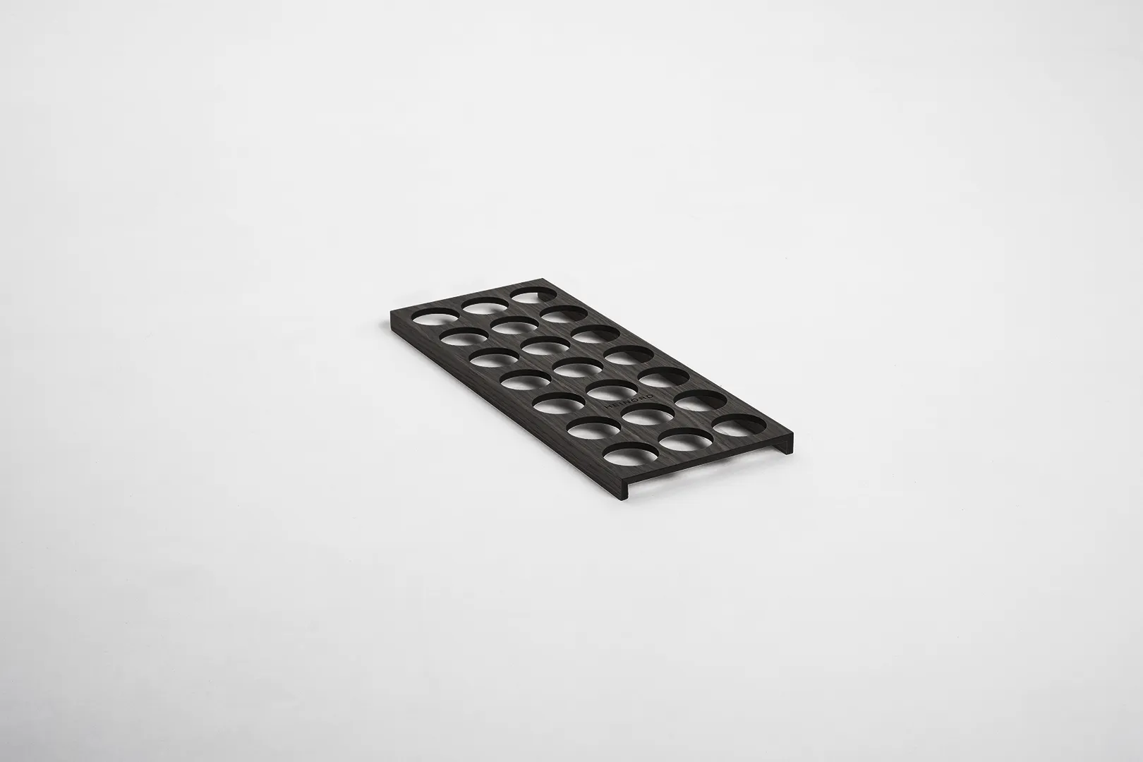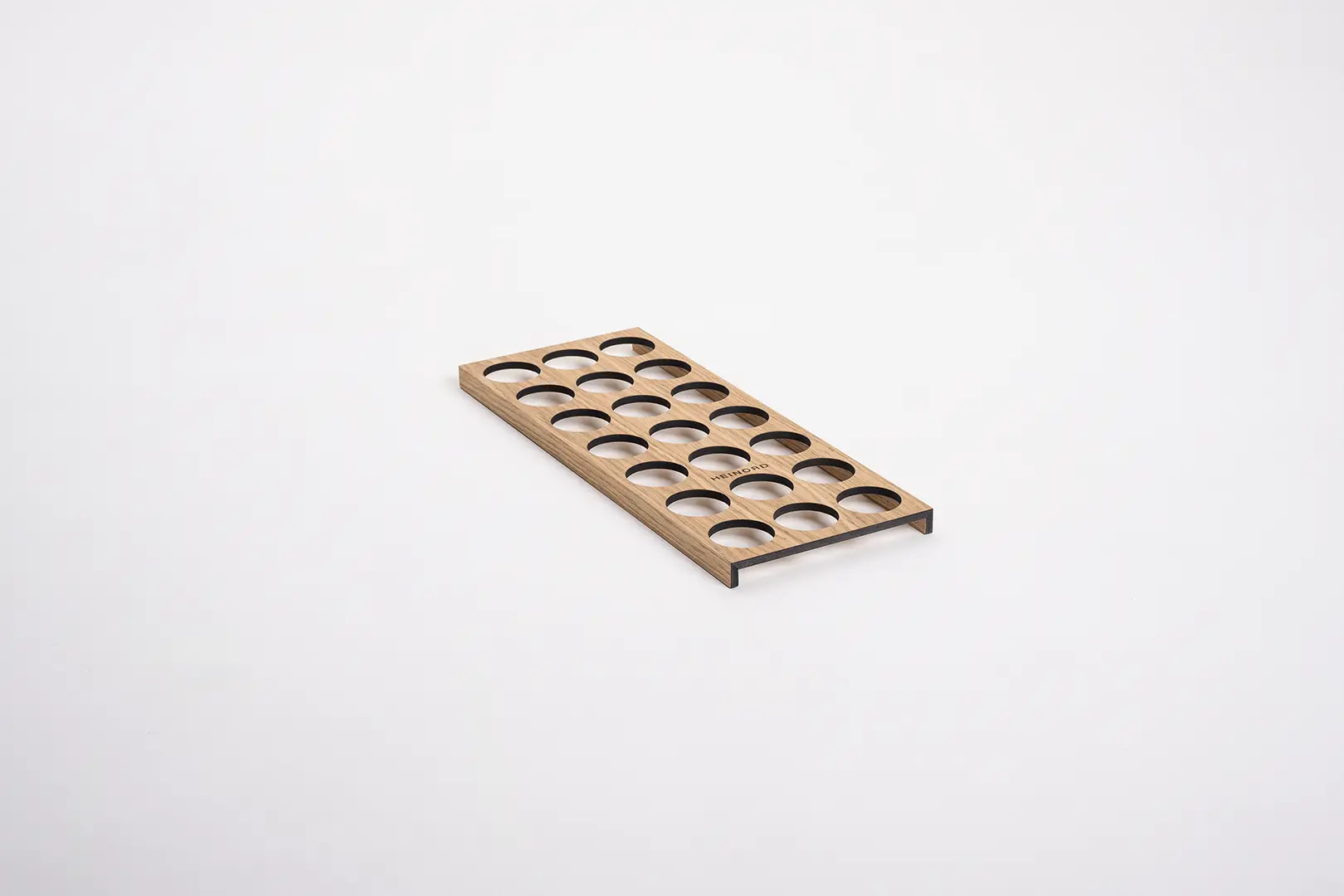 Elegancki organizer z litego dębu do przechowywania niskich słoiczków na przyprawy.